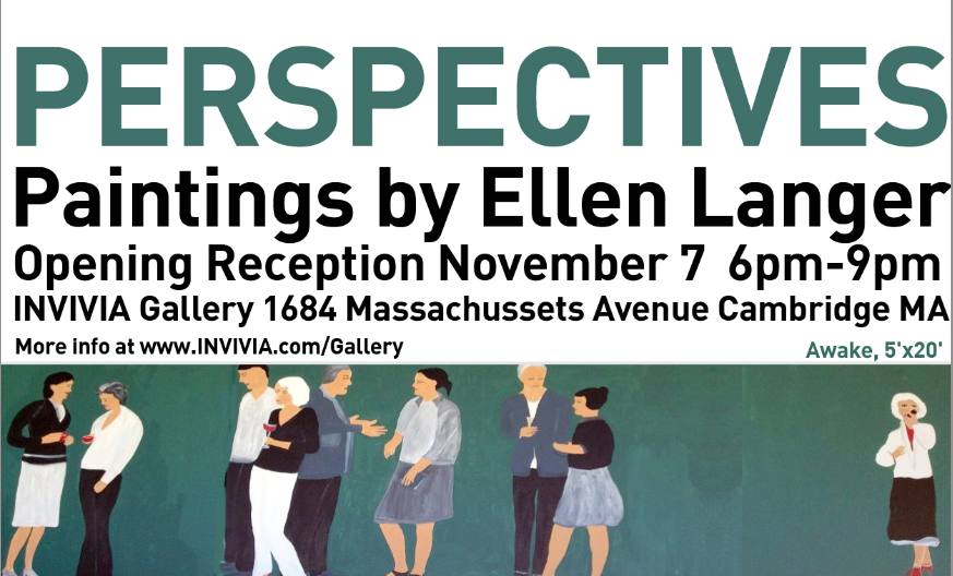 November 7: You are invited to attend PERSPECTIVES by Ellen Langer at INVIVA GALLERY 1684 Massachusetts Avenue, Cambridge 6PM to 9PM. Come see her extraordinary art and expand your perspective.