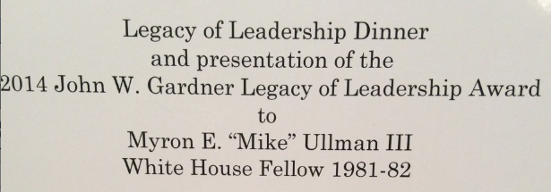 November 14, 2014 WDC White House Fellows Alumni Association Annual Meeting set the stage for the introduction of the 2014 John Gardner Legacy of Leadership Honoree Michael Ullman by providing a humorous profile of our 1981-82 class which has two Fellows named "Mike".