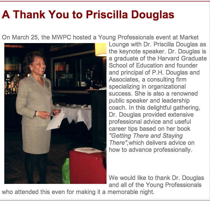 October 24, 2014 Boston Chapter of National Association of Professional Womens at Simmons College. Keynote Presentation: "Expanding Your Emotional Intelligence: To Get There and Stay". Sponsored by Nelson Mullins.